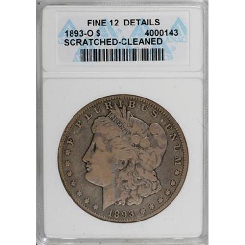 <B>1893-O $1 --Cleaned, Scratched--ANACS. Fine 12 Details.</B></I> NGC Census: (20/1471). PCGS Population (24/1992). Mintage: 300,000. Numismedia Wsl. Price for NGC/PCGS coin in F12: $192. (#7224)<BR><BR><B>Coin Engraver:</B> George T. Morgan<BR><BR><b>Shipping:</b> Coins & Currency (<a target="_blank" href="http://www.heritageauctions.com/common/shipping.php">view shipping information</a>)