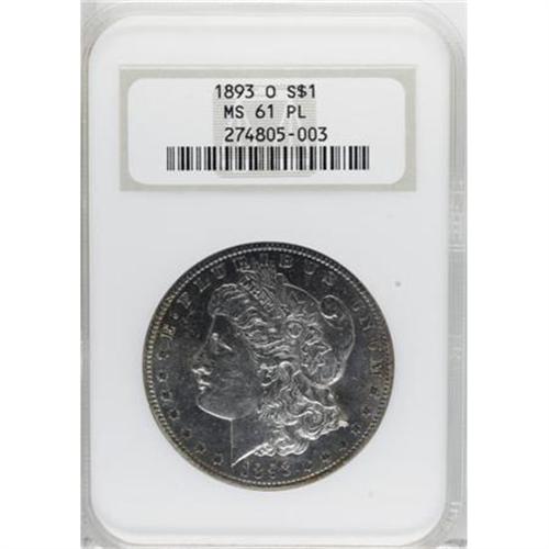 <B>1893-O $1 MS61 Prooflike NGC.</B></I> Light mauve-plum and peach patina graces the margins. This low mintage New Orleans dollar has flashy fields and a reasonable strike. The reverse is impressively smooth, while the left obverse has the expected number of individually minor marks. Encased in a former generation holder and incredibly appealing for the grade assigned. Census: 6 in 61 Prooflike, 15 finer (6/07).<BR><I>From the Diamond Head Collection.</B></I><BR><BR><B>Coin Engraver:</B> George T. Morgan<BR><BR><b>Shipping:</b> Coins & Currency (<a target="_blank" href="http://www.heritageauctions.com/common/shipping.php">view shipping information</a>\)