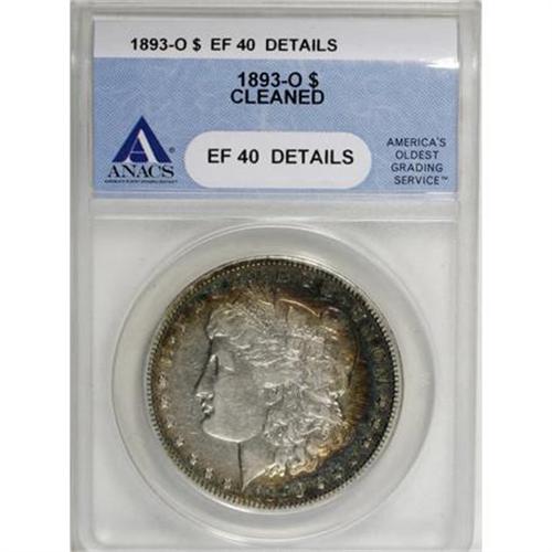 <B>1893-O $1 --Cleaned--ANACS. XF40 Details.</B></I> NGC Census: (60/1256). PCGS Population (91/1695). Mintage: 300,000. Numismedia Wsl. Price for NGC/PCGS coin in XF40: $475. (#7224)<BR><BR><B>Coin Engraver:</B> George T. Morgan<BR><BR><b>Shipping:</b> Coins & Currency (<a target="_blank" href="http://www.heritageauctions.com/common/shipping.php">view shipping information</a>)