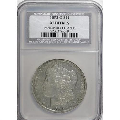 <B>1893-O $1 --Improperly Cleaned--NGC. XF Details.</B></I> NGC Census: (64/1302). PCGS Population (94/1725). Mintage: 300,000. Numismedia Wsl. Price for NGC/PCGS coin in XF40: $475. (#7224)<BR><BR><B>Coin Engraver:</B> George T. Morgan<BR><BR><b>Shipping:</b> Coins & Currency (<a target="_blank" href="http://www.heritageauctions.com/common/shipping.php">view shipping information</a>)