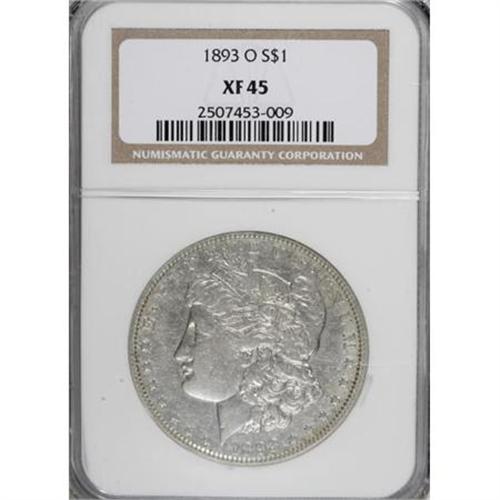 <B>1893-O $1 XF45 NGC.</B></I> NGC Census: (119/1137). PCGS Population (162/1517). Mintage: 300,000. Numismedia Wsl. Price for NGC/PCGS coin in XF45: $571. (#7224)<BR><BR><B>Coin Engraver:</B> George T. Morgan<BR><BR><b>Shipping:</b> Coins & Currency (<a target="_blank" href="http://www.heritageauctions.com/common/shipping.php">view shipping information</a>)