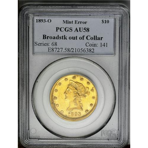 1893-O $10 --Broadstruck Out of Collar--AU58 PCGS. A sp 1893-O[$10] Liberty Eagle--Broadstruck Out o