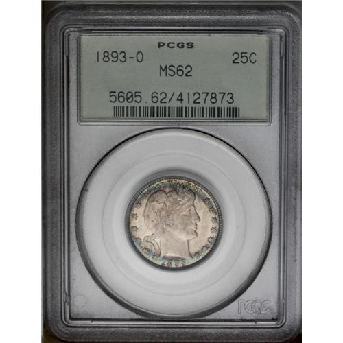1893-O 25C MS62 PCGS. Mintmark far right. This example 1893-O[25C] MS62 PCGS.