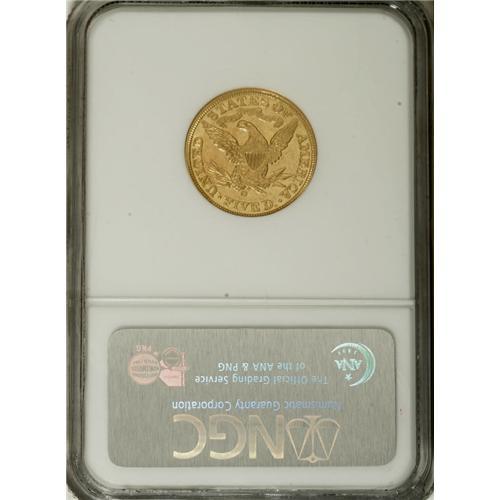 <B>1893-O $5 MS61 NGC.</B></I> Light green-gold color and prooflike fields are hallmarks of this attractive half eagle. The grade-limiting marks on each side are numerous, but are mostly superficial. A scarcer issue from a mintage of just 110,000 pieces.<BR><BR><b>Shipping:</b> Coins & Currency (<a target="_blank" href="http://www.heritageauctions.com/common/shipping.php">view shipping information</a>)