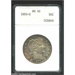 1893-O 50C AU50 ANACS. A bit weakly struck in the centers, the satiny surfaces are lightly toned with deeper peripheral accents.From the Ohio Collection. Important notice: We expect to be auctioning lots at the rate of 200-250 per hour. Sometimes eBay Premier live bid software cannot keep up with that pace, so we strongly recommend that you place a realistic proxy bid now as insurance to avoid disappointment. Also please note that all Heritage/CAA lots purchased through eBay Premier carry a 20% Buyer's Premium. Please make sure you read the Terms and Conditions.