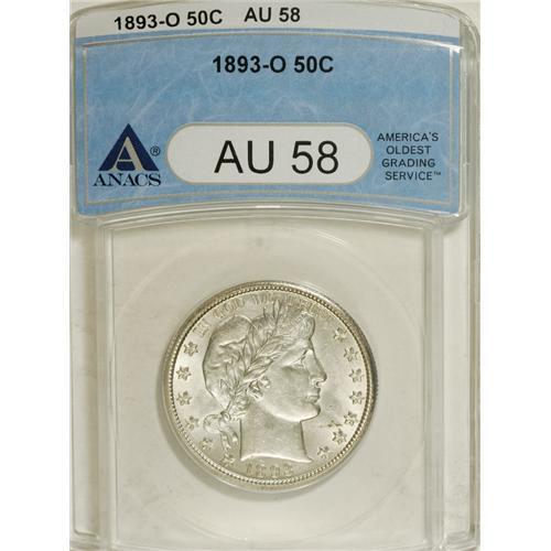<B>1893-O 50C AU58 ANACS.</B></I> NGC Census: (11/112). PCGS Population (17/113). Mintage: 1,389,000. Numismedia Wsl. Price: $392. (#6466)<BR><BR><b>Shipping:</b> Coins & Currency (<a target="_blank" href="http://www.heritageauctions.com/common/shipping.php">view shipping information</a>)