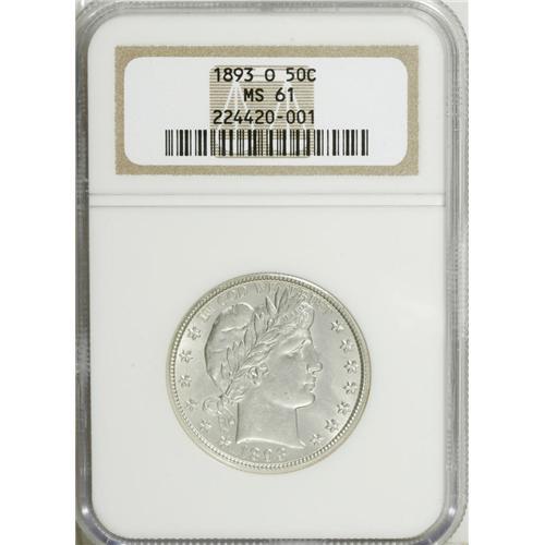 <B>1893-O 50C MS61 NGC.</B></I> NGC Census: (11/101). PCGS Population (3/108). Mintage: 1,389,000. Numismedia Wsl. Price: $500. (#6466)<BR><BR><b>Shipping:</b> Coins & Currency (<a target="_blank" href="http://www.heritageauctions.com/common/shipping.php">view shipping information</a>)