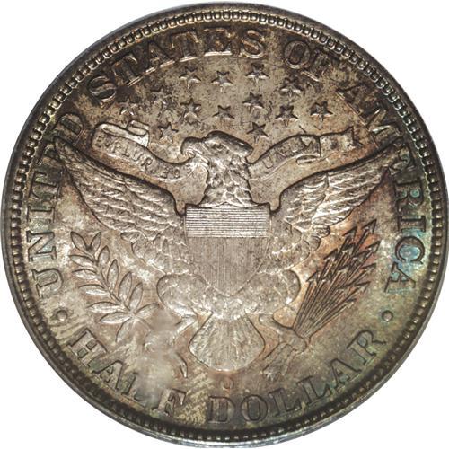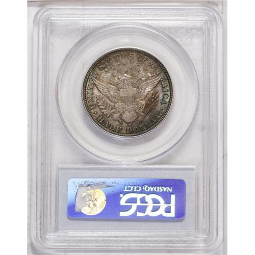 <B>1893-O<50C> MS64 PCGS.</B></I> The 1893-O, with a mintage of 1,389,000 pieces, is available in MS63 and MS64 with a little searching and patience. Full Gem examples, however, are rare. Like many New Orleans issues, the 1893-O often comes weakly struck. The current lovely near-Gem is nicely struck for the most part: The only areas of softness are on the upper right (facing) part of the shield and on the eagle's left talons and adjacent arrow feathers. The lustrous surfaces offer original shades of golden-orange and purple, with flashes of turquoise at the margins. Minute abrasions on Liberty's cheek and neck and in the obverse fields limit the grade. Population: 38 in 64, 7 finer (6/06).