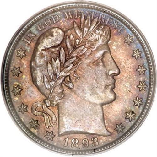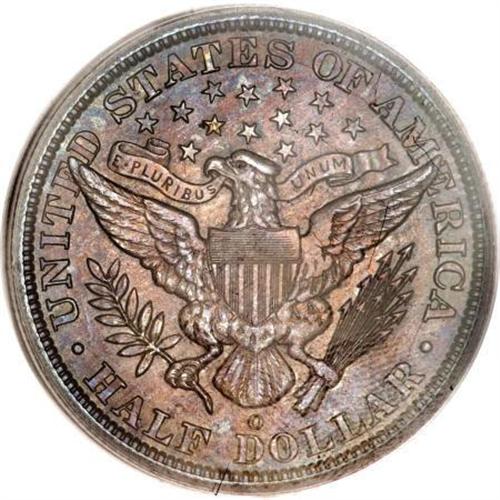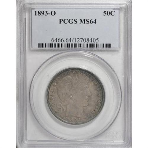<B>1893-O 50C MS64 PCGS.</B></I> A fully lustrous near-Gem, this delightful 1893-O half dollar is deeply toned in golden-brown, pale blue, and steel. Some weakness is evident at the base of the right (facing) wing, with the balance of design work boldly defined. Population: 60 in 64, 7 finer (3/08).<BR><BR><B>Coin Engraver:</B> Charles E. Barber<BR><BR><b>Shipping:</b> Coins & Currency (<a target="_blank" href="http://www.heritageauctions.com/common/shipping.php">view shipping information</a>)
