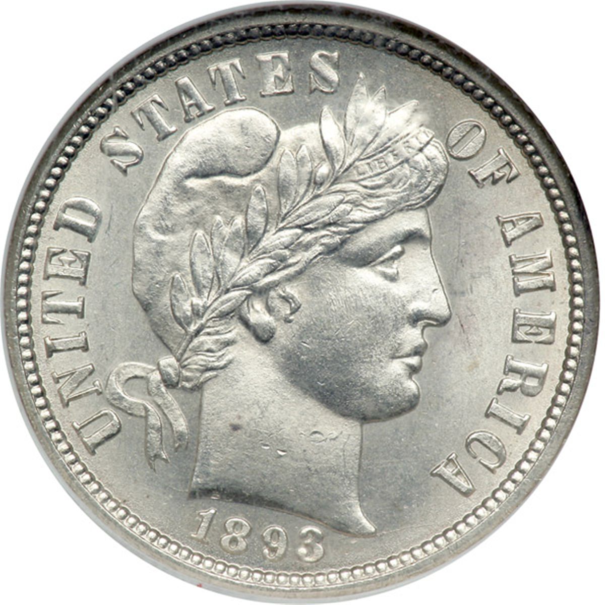 1893-O Barber Dime. NGC graded MS-65. Well struck, frosty and untoned. This is a lovely, radiant Gem from the New Orleans Mint, both sides being essentially as-struck with vibrant, silver-white luster. Judged from an aesthetic standpoint, this ’93-O is also possessed of a much finer strike than is typically found for a Barber Dime from this decade. Thoroughly pleasing from top to bottom. Pop 8; 9 finer.
