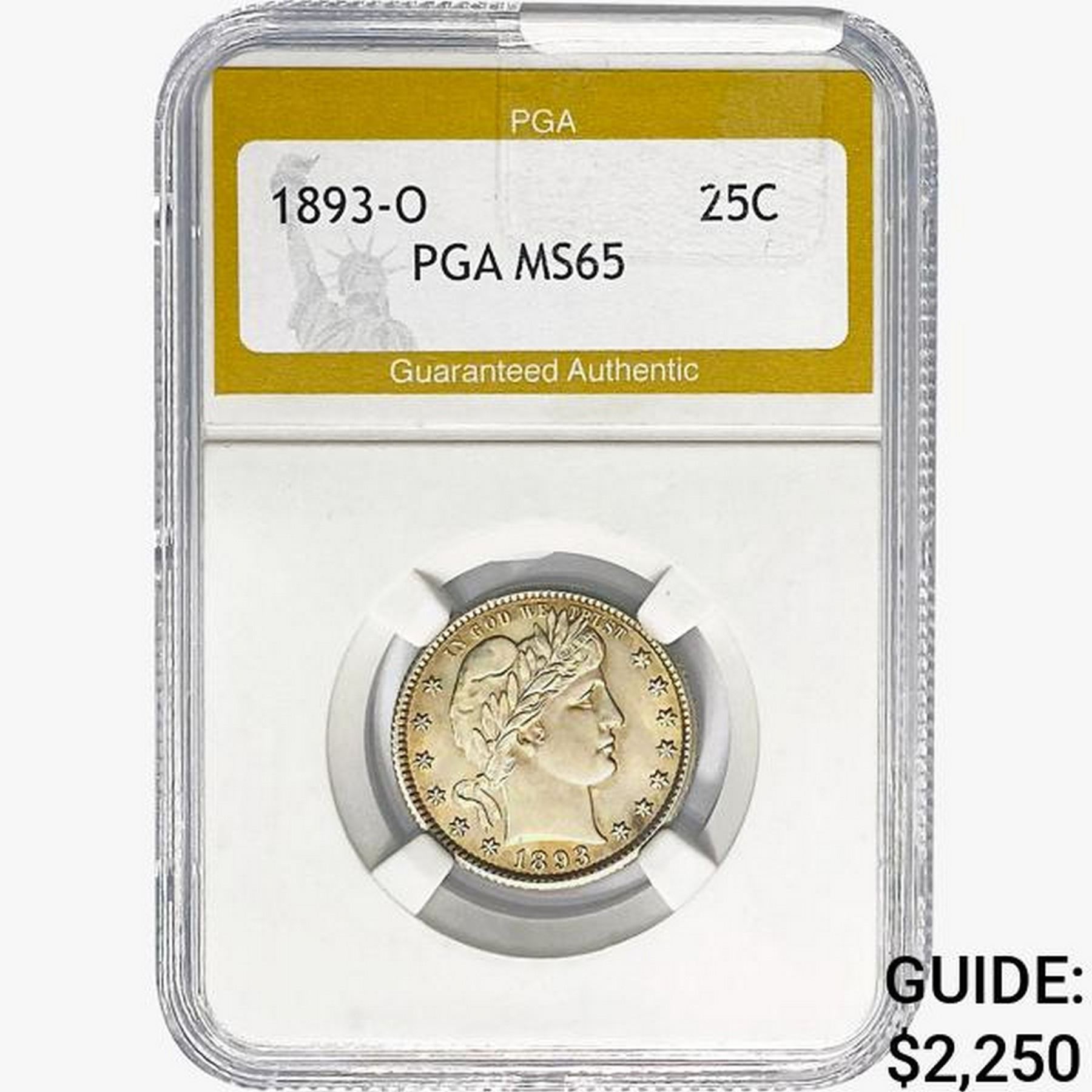 1893-O Barber Quarter PGA MS65