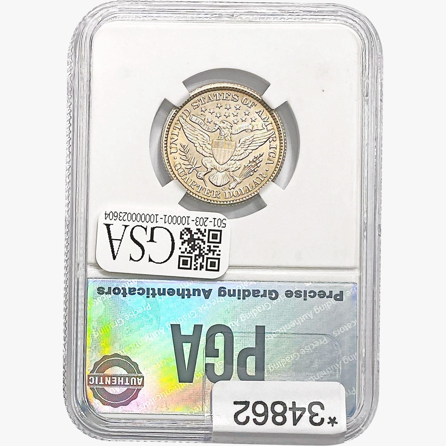 COINS AND CURRENCY LISTED IN GSA’S CATALOG AS GRADED AND ENCAPSULATED BY PCGS, NGC, ANACS, ICG, PCGS CURRENCY, PMG, PCGS BANKNOTE GRADING, CMC OR ANY OTHER THIRD-PARTY GRADING SERVICE ARE LIKEWISE SOLD “AS-IS” EXCEPT AS EXPRESSLY SET FORTH HEREIN. ALL THIRD-PARTY GRADING SERVICE GUARANTEES, INCLUDING AUTHENTICITY, ARE THE SOLE RESPONSIBILITY OF THE THIRD-PARTY GRADING SERVICE AND NOT WARRANTIES OR GUARANTEES OF GSA. BIDDERS SHOULD CONTACT THESE THIRD-PARTY GRADING SERVICES DIRECTLY WITH RESPECT TO ANY CLAIMS OR QUESTIONS THEY MAY HAVE CONCERNING THEIR GUARANTEES AND WARRANTIES. BIDDERS ACKNOWLEDGE AND AGREE THAT AUCTIONEER IS NOT BOUND BY OR LIABLE FOR ANY OPINION OR CERTIFICATION BY ANY THIRD-PARTY GRADING SERVICE. REMOVAL OF A PRODUCT FROM ITS PROTECTIVE CASING OR HOLDER OR ALTERATION OF ANY COIN HOLDER WAIVES ALL RIGHTS CONCERNING THE PRODUCT CONTAINED THEREIN.