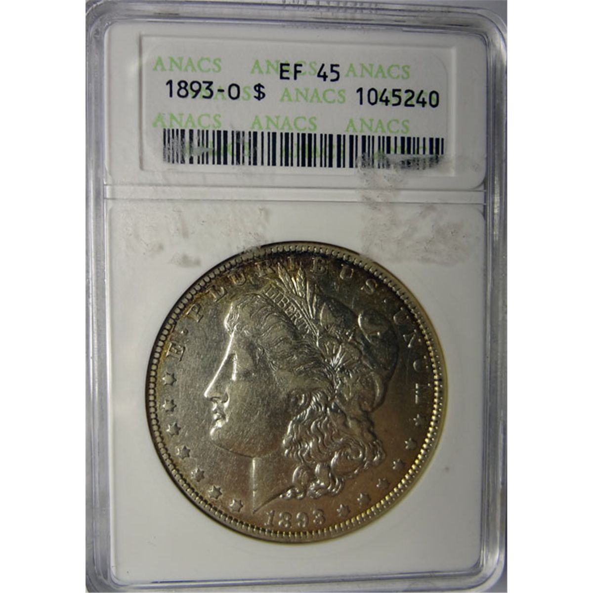 1893-O MORGAN DOLLAR ANACS EF-AU45 NICE!