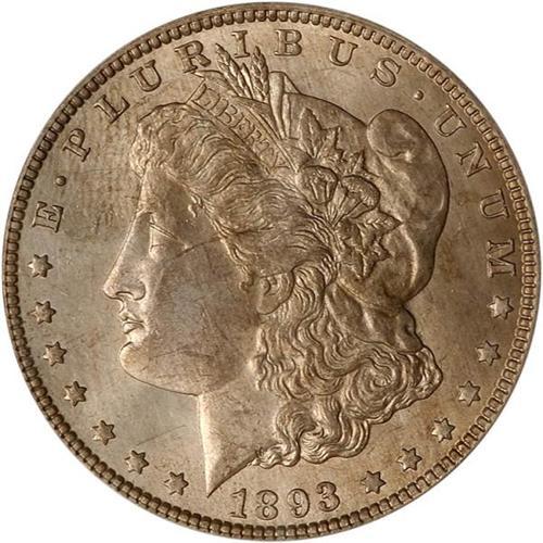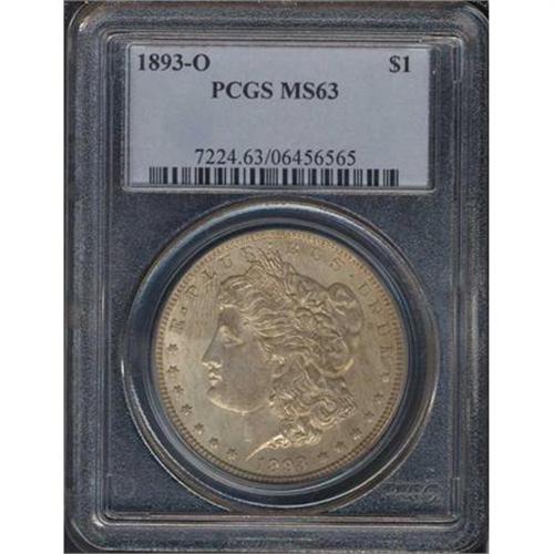 <b>1893-O Morgan Dollar. PCGS graded MS63.</b> Well toned and original throughout with excellent underlying luster, the color being midway between neutral silver-gray and light russet brown. Clear-cut devices point to it having been giving a decent, but not quite a full strike by the dies. Weakness occurs at these few locations only: the two or three topmost hair curls at Liberty's ear, as well as the central and upper part of the eagle's breast where the feathers, though visible, are visibly weak. If you see bidders in the room wiping their foreheads and breathing quickly when this coin's lot number is announced, you'll know there are some savvy individuals getting ready to bid on it. The 1893-O has long been recognized as a very scarce date in this widely collected series.