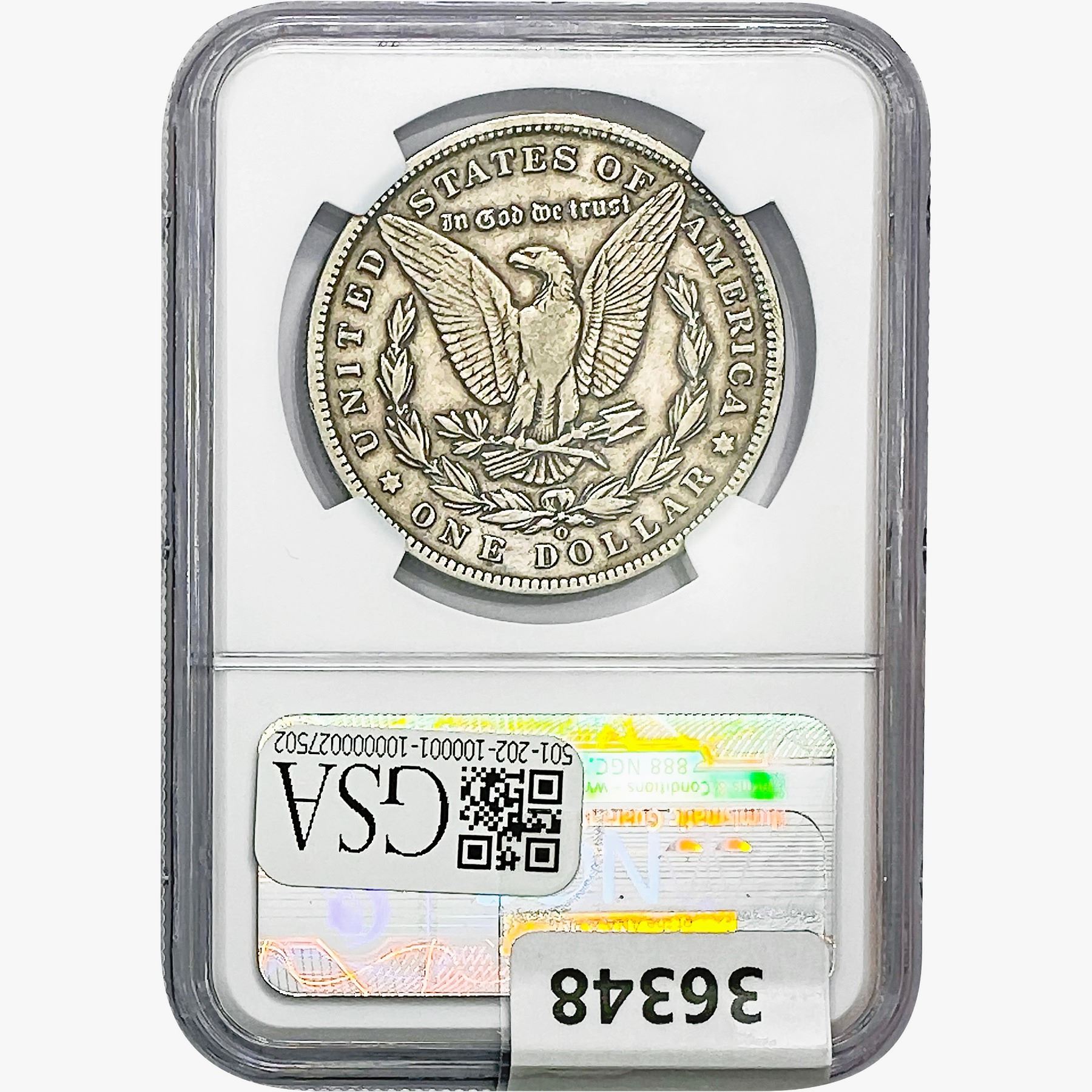 COINS AND CURRENCY LISTED IN GSA’S CATALOG AS GRADED AND ENCAPSULATED BY PCGS, NGC, ANACS, ICG, PCGS CURRENCY, PMG, PCGS BANKNOTE GRADING, CMC OR ANY OTHER THIRD-PARTY GRADING SERVICE ARE LIKEWISE SOLD “AS-IS” EXCEPT AS EXPRESSLY SET FORTH HEREIN. ALL THIRD-PARTY GRADING SERVICE GUARANTEES, INCLUDING AUTHENTICITY, ARE THE SOLE RESPONSIBILITY OF THE THIRD-PARTY GRADING SERVICE AND NOT WARRANTIES OR GUARANTEES OF GSA. BIDDERS SHOULD CONTACT THESE THIRD-PARTY GRADING SERVICES DIRECTLY WITH RESPECT TO ANY CLAIMS OR QUESTIONS THEY MAY HAVE CONCERNING THEIR GUARANTEES AND WARRANTIES. BIDDERS ACKNOWLEDGE AND AGREE THAT AUCTIONEER IS NOT BOUND BY OR LIABLE FOR ANY OPINION OR CERTIFICATION BY ANY THIRD-PARTY GRADING SERVICE. REMOVAL OF A PRODUCT FROM ITS PROTECTIVE CASING OR HOLDER OR ALTERATION OF ANY COIN HOLDER WAIVES ALL RIGHTS CONCERNING THE PRODUCT CONTAINED THEREIN.