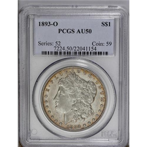 1893-O S$1 AU50 PCGS. Light silvery-gray surfaces are 1893-O[img border='0' src='http://www.heritage