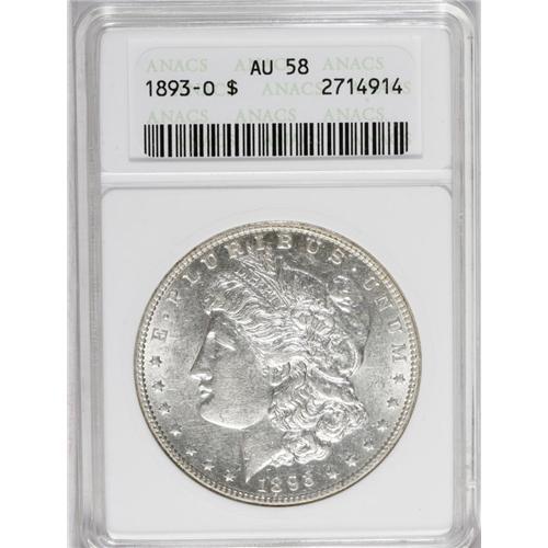 1893-O S$1 AU58 ANACS. This untoned example approaches