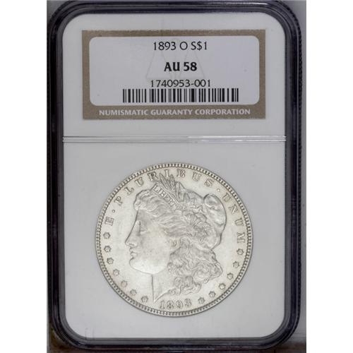 1893-O S$1 AU58 NGC. Only a whisper of gold color is p 1893-O[S$1] AU58 NGC.