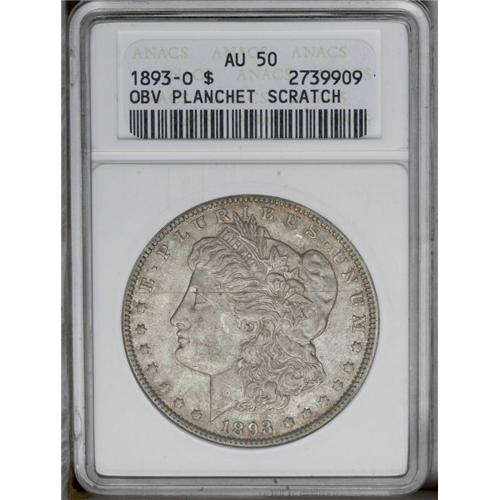 1893-O S$1 --Obverse Planchet Scratch--ANACS. AU50 Deta 1893-O[img border='0' src='http://www.herita