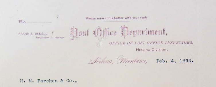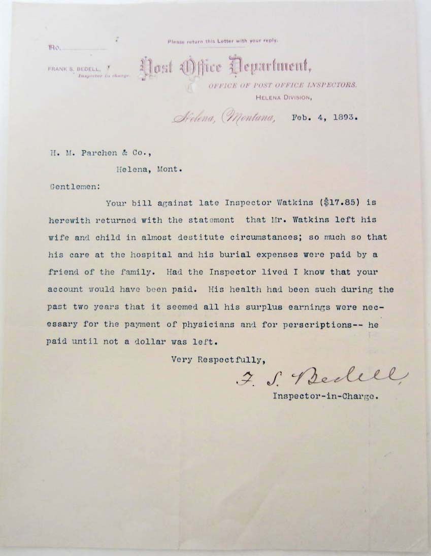 1893 POST OFFICE INSPECTORS RETURNED BILL DUE TO DEATH