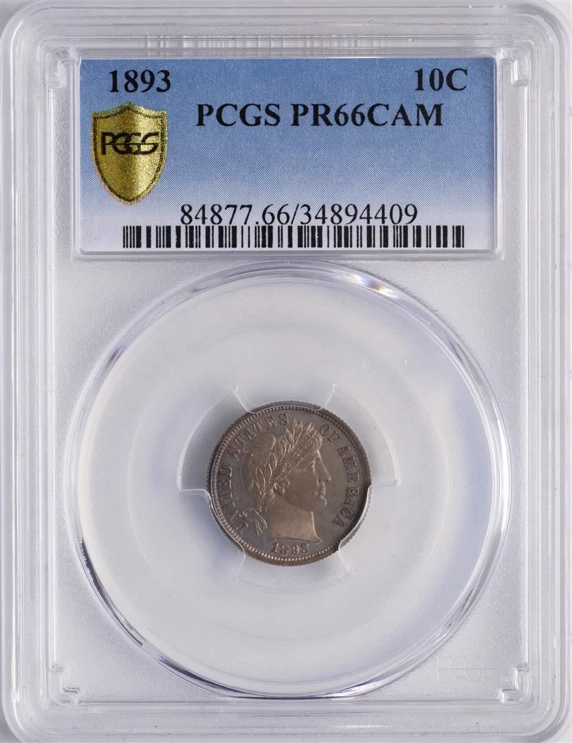 One 1893 Proof Barber Dime Coin PCGS PR66CAM Amazing Toning. PCGS Graded.