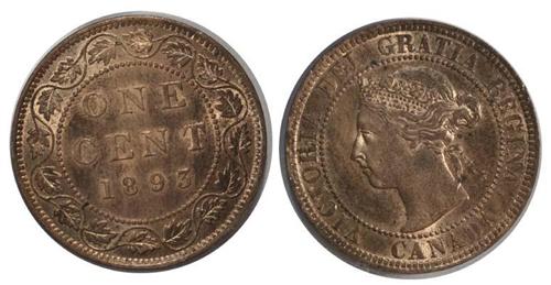 1893 R9 Canada Large Cent-ICCS MS63RB
