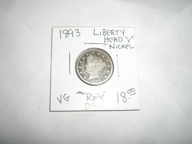 1893 *RARE KEY DATE* LIBERTY "V" NICKEL-RED BOOK VALUE $18.00+ *NICE EARLY VERY GOOD GRADE* NICKEL!! COIN CAME OUT OF SAFE BOX!! ***Coin, Currency & All Items Listed in this auction - Grades, Conditions and Values are not Safe Deposit Coins LLC Responsibilty. Grades, Condition and Values are determined by Consigner(s) & Buyers ONLY