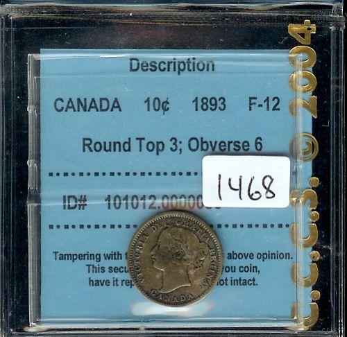 1893 "Round Top 3" Obverse 6, CCCS F-12, toned, key date. Nice example.