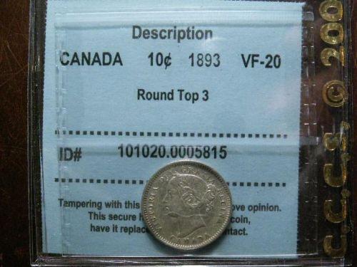 1893 "Round Top 3" Obverse 6, CCCS VF20, key date. Nice example.