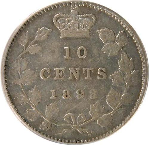 Canada Ten Cents 1893 Round Top 3, Obverse 6 PCGS VF-30. A rather strongly struck 3 and light golden-gray toning. Among the top dozen and a half by PCGS