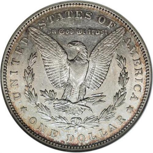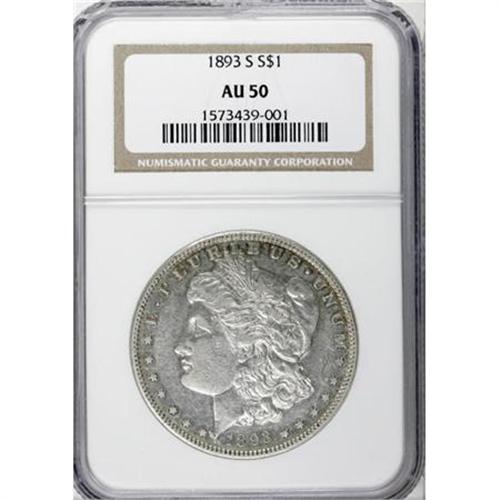 <B>1893-S $1 AU50 NGC.</B></I> This glowing key-date Morgan dollar would be the pride of an advanced collection of such pieces. The surfaces retain most of the original luster, complementing the light-golden cast seen at the rims on each side, with a dash of russet and ice-blue near the lower reverse rim. While grade-consistent rub appears in the center of the eagle's breast and the wing highpoints, on Liberty's cheek, on the highest hair above Liberty's ear and below LIBERTY, much pleasing detail remains. The overall appeal of this piece is undeniable, and many a collector will no doubt vie for the privilege of adding this lovely coin to his/her holdings.<BR><BR><B>Coin Engraver:</B> George T. Morgan<BR><BR><b>Shipping:</b> Coins & Currency (<a target="_blank" href="http://www.heritageauctions.com/common/shipping.php">view shipping information</a>)