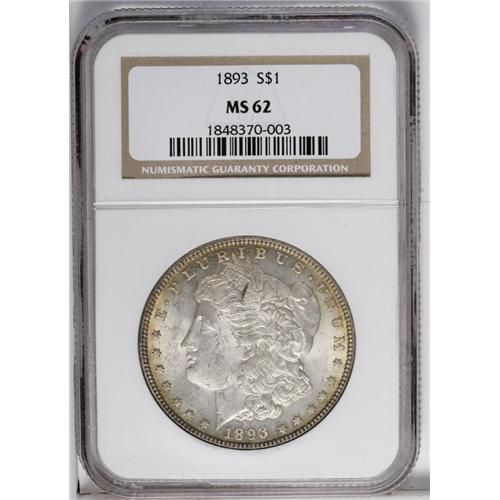 1893 S$1 MS62 NGC. A highly lustrous and well struck e