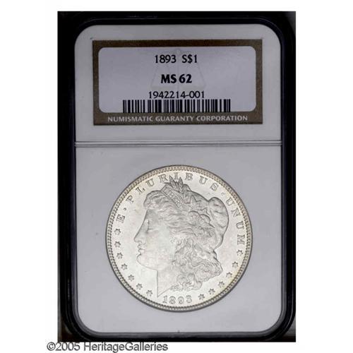 1893 S$1 MS62 NGC. The contact marks that are responsi 1893[S$1] MS62 NGC.