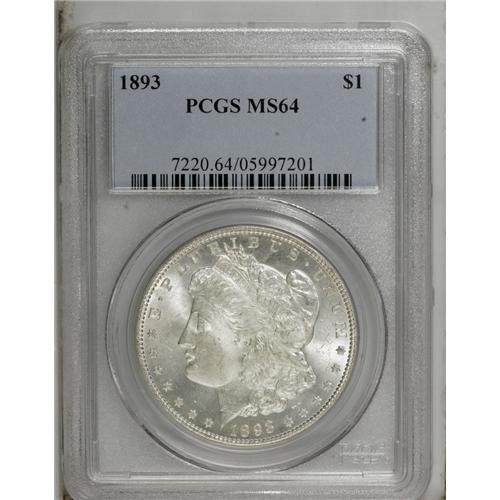 1893 S$1 MS64 PCGS. Essentially untoned surfaces emit