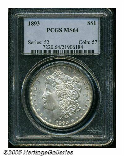 1893 S$1 MS64 PCGS. Lustrous, nicely struck, and