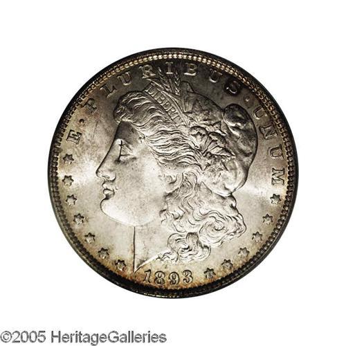 <B>1893<S$1> MS64 PCGS.</B></I> Satiny luster over well struck surfaces graced by copper-golden peripheries. Devoid of all but the most trivial distractions. An attractive and desirable near-Gem example of this better-date Morgan dollar.