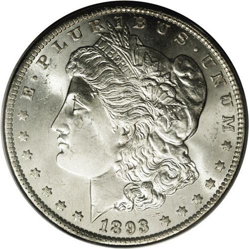 <B>1893<img border='0' src='http://www.heritagecoins.com/images/star.gif' width=10 height=10>$1> MS64 PCGS.</B></I> This is a beautiful Choice Mint State example with exceptional eye appeal. The surfaces have frosty, silver luster and the devices are sharply defined. This is the most affordable issue among all Morgan silver dollars struck in 1893.