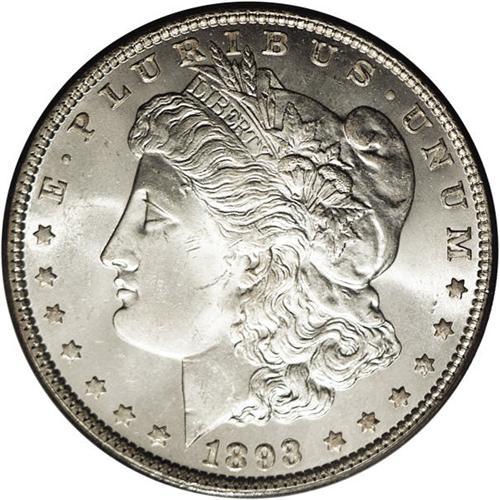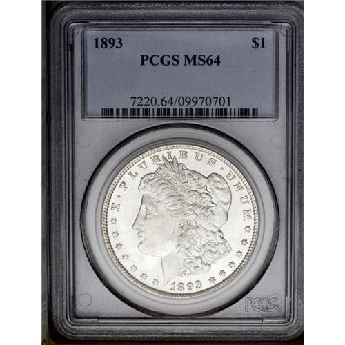 <B>1893<img border='0' src='http://www.heritagecoins.com/images/star.gif' width=10 height=10>$1> MS64 PCGS.</B></I> This lovely coin has the look of a Gem, yet a couple of abrasions on Liberty's cheek prevent that assessment. This coin is, nonetheless, quite high-end, with brilliant surfaces, bold luster, and a decent strike. <BR><BR><B>Important notice:</B> Heritage usually auctions material at the rate of 200-250 lots per hour. On some occasions eBay Live bid software or the Internet may not be able to keep up with the pace of the auction. We recommend placing a realistic absentee bid now as insurance to avoid disappointment. Occasionally the auctioneer may eliminate or reject an eBay Live bid, and the auctioneer may also reopen a lot after the close of the eBay live bidding (usually because we missed an audience bid), and may reject your bid even if it shows you as the winning bidder. By bidding via eBay Live, you agree that Heritage may award the lot to another bidder at its sole discretion under the circumstances described above or any other reasonable circumstances. Since eBay bids are not shown to us until we open the lot on the floor, we treat those bids just like floor bids. In most cases the floor responds before the eBay bid is presented to us, due to Internet lag time, so for consistency we have made it a policy that floor bids are always considered first over tie eBay live bids. Also please note that all Heritage lots purchased through eBay Live carry a 20% Buyer's Premium. Please make sure you read the Terms and Conditions before you bid. This lot is being auctioned in conjunction with a live floor auction by Heritage Galleries & Auctioneers. All final auction and invoice information will be supplied by Heritage Galleries & Auctioneers, and all other information should be considered preliminary. Lot:3616 <BR><BR><B>Winning Notification and Billing:</B> After the FINAL session in this auction is complete, Heritage will send e-mail and snail mail invoices. This process normally takes several days. All final auction and invoice information will be supplied by Heritage Galleries & Auctioneers, and all other information should be considered preliminary. <BR><BR>This auction will be conducted on a live auction floor and over the Internet through eBay Live. If you choose to place an absentee bid, please take a moment to <font color='#0000ff'><u><a href='http://pages.ebay.com/liveauctions/help/before/laabsentee.html'>learn how eBay Live absentee bidding works</a></u></font><font color='#000000'>