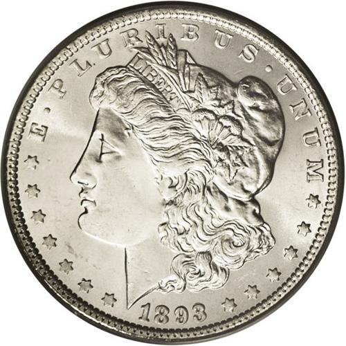 <B>1893<img border='0' src='http://www.heritagecoins.com/images/star.gif' width=10 height=10>$1> MS64 PCGS.</B></I> Virtually untoned, with bright, lustrous surfaces. The design elements are well struck throughout. A few grade-defining marks are noted on the obverse, but these hardly detract.<BR><I>From The Chicago-Ark Collection.</B></I>