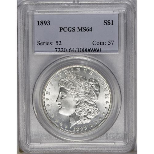 1893 S$1 MS64 PCGS. Virtually untoned, with bright, lu