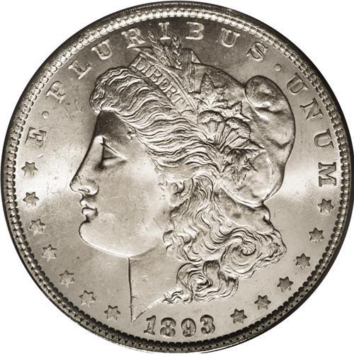 <B>1893 S$1 MS65 PCGS.</B></I> Ex: Ray George. Largely brilliant with just a touch of olive-cream haze in the lower left obverse field. The devices are robustly struck and have only minor marks and grazes. All the Morgan dollars from 1893 are low-mintage issues and elusive in some way. PCGS has certified only four coins finer (10/06).<BR><I>From The Cocoa Beach Collection.</B></I><BR><BR><b>Shipping:</b> Coin/Currency (<a target="_blank" href="http://www.heritageauctions.com/common/shipping.php">view shipping information</a>)