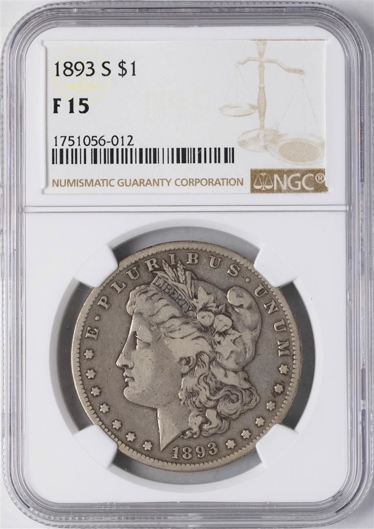 One 1893-S $1 Morgan Silver Dollar Coin NGC F15. NGC Certified.
