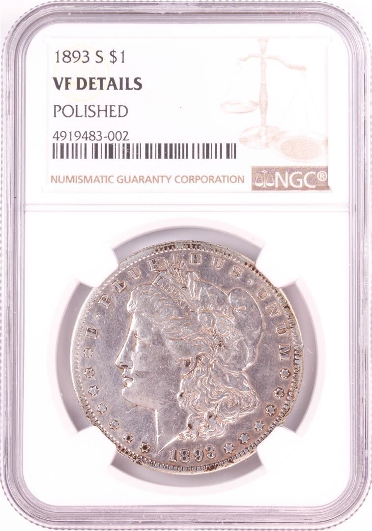 One 1893-S $1 Morgan Silver Dollar Coin NGC VF Details. NGC Certified.