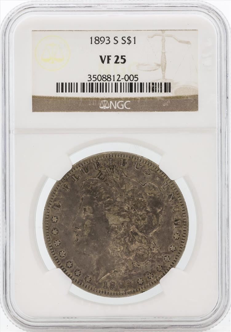 One 1893-S $1 Morgan Silver Dollar Coin NGC VF25. NGC Certified.