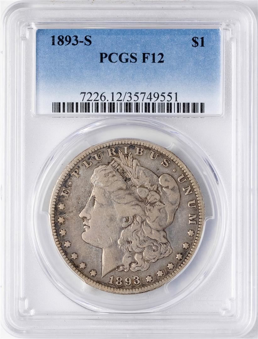 One 1893-S $1 Morgan Silver Dollar Coin PCGS F12. PCGS Graded.