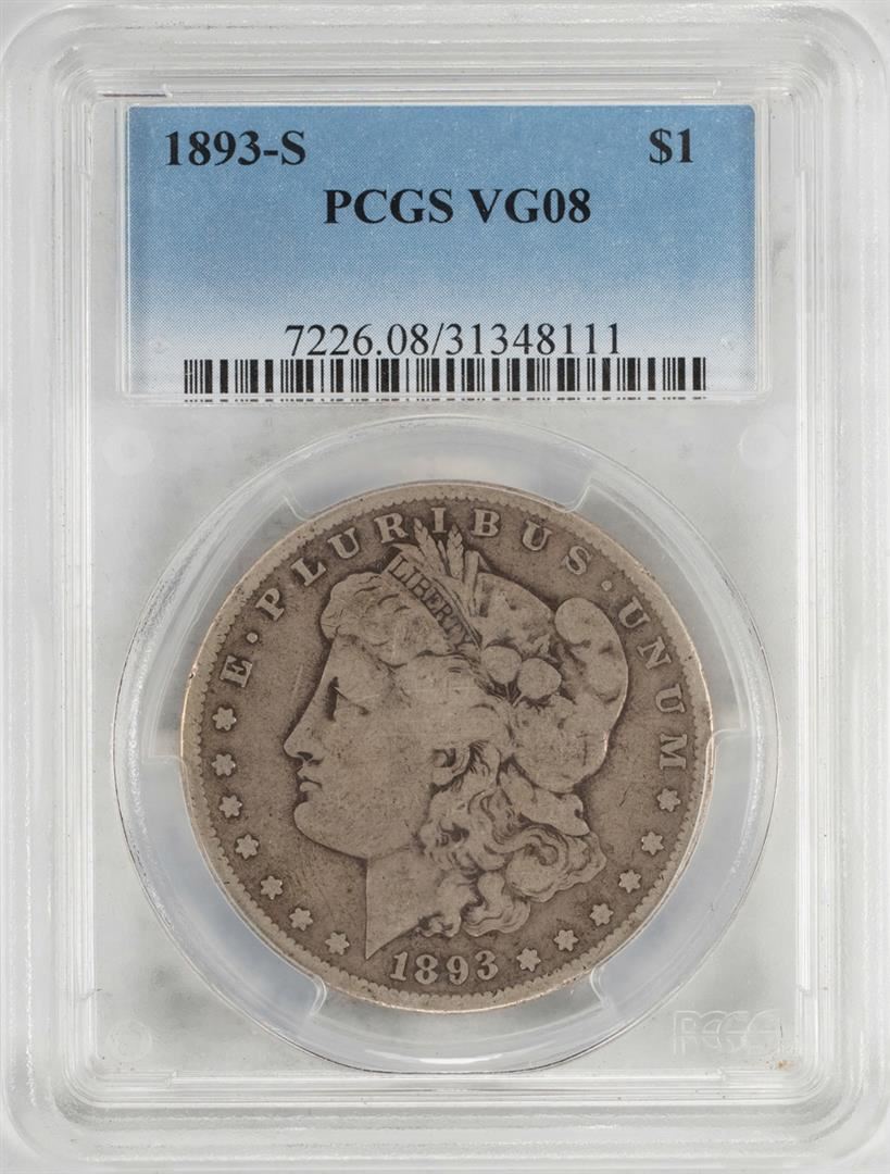 One 1893-S $1 Morgan Silver Dollar Coin PCGS VG08. PCGS Graded.