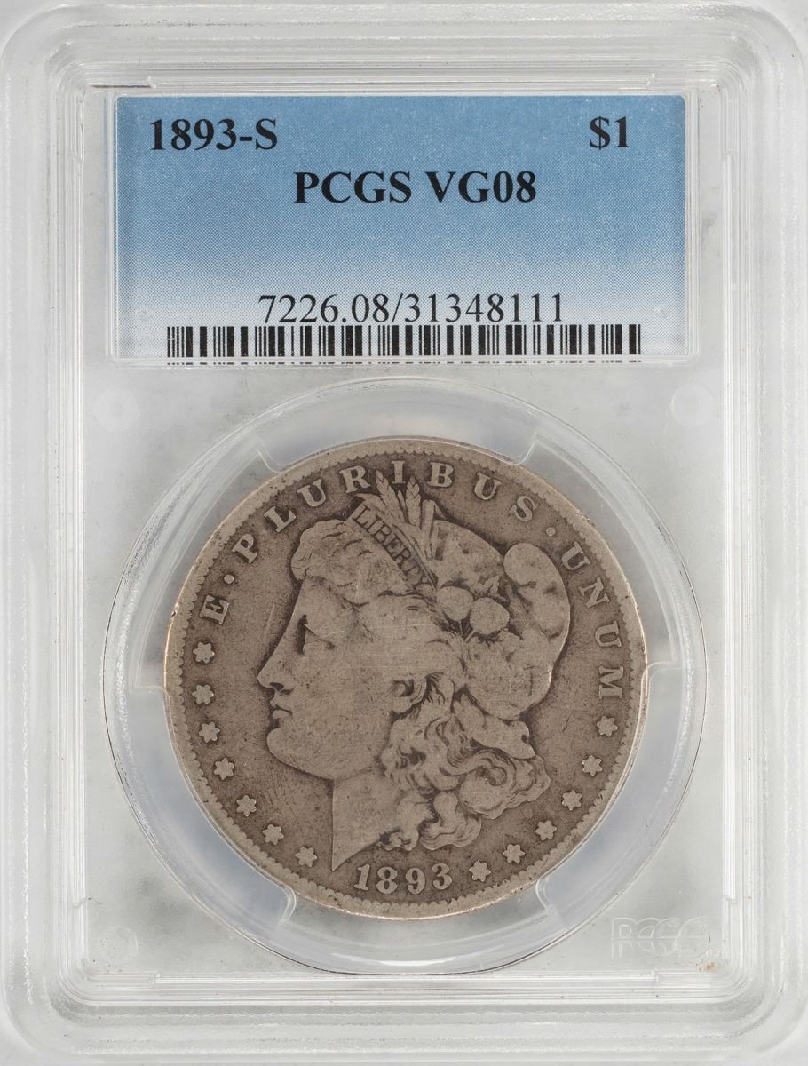 One 1893-S $1 Morgan Silver Dollar Coin PCGS VG08.