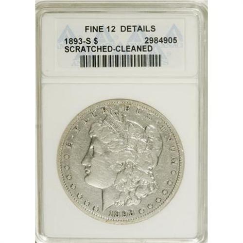 1893-S $1 --Scratched, Cleaned--ANACS. Fine 12