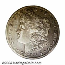 <TR><TD width="100%"><TABLE cellSpacing=1 cellPadding=3 width="100%" border=0><TBODY><TR><TD width="100%" bgColor=#79735c><FONT face=arial color=#ffffff size=3><B>Description</B> </FONT></TD></TR><TR><TD width="100%" bgColor=#ffffff><FONT face=arial size=2><B>1893-S $1 XF45 PCGS.</B></I> With an exception made for the unverified 1895, the 1893-S is the rarest issue in the entire business strike Morgan Dollar series of 1878-1921. A desirable coin at all levels of preservation, this Choice XF survivor displays a pleasingly toned sheen in medium gray hues. None of the scattered abrasions are sizeable or all that conspicuous to the naked eye, and the devices are overall bold despite light highpoint rub. A coin that should have little difficulty going to a new owner.<BR><I>From the CEO PCGS Morgan Dollar Registry Set.</B></I> </FONT></TD></TR></TBODY></TABLE></TD></TR></TBODY></TABLE><BR><A name=PricesRealized></A><TABLE cellSpacing=0 cellPadding=0 width="100%" bgColor=#000000 border=0><TBODY><TR><TD width="100%"><TABLE cellSpacing=1 cellPadding=3 width="100%" border=0><TBODY><TR><TD width="100%" bgColor=#79735c><A name=PR><FONT face=arial color=#ffffff size=3><B>Previous Prices from Heritage Auctions</B> </FONT></A></TD></TR><TR><TD bgColor=#f6f6ed><TABLE cellSpacing=0 cellPadding=0 width="100%" border=1><TBODY><TR><TD align=middle width="33%"><B>Date</B></TD><TD align=middle width="33%"><B>Service</B></TD><TD align=middle width="33%"><B>Price</B></TD></TR><TR bgColor=whitesmoke><TD width="33%"><B>11/23/2002</B></TD><TD width="33%">PCGS</TD><TD width="33%">$5,750.00</TD></TR><TR bgColor=whitesmoke><TD width="33%"><B>10/02/2000</B></TD><TD width="33%">PCGS</TD><TD width="33%">$6,900.00</TD></TR><TR bgColor=whitesmoke><TD width="33%"><B>02/18/2002</B></TD><TD width="33%">PCGS</TD><TD width="33%">$5,750.00</TD></TR><TR bgColor=whitesmoke><TD width="33%"><B>03/01/2001</B></TD><TD width="33%">PCGS</TD><TD width="33%">$5,175.00</TD></TR><TR bgColor=whitesmoke><TD width="33%"><B>06/08/2002</B></TD><TD width="33%">PCGS</TD><TD width="33%">$8,625.00</TD></TR><TR bgColor=whitesmoke><TD width="33%"><B>08/19/1995</B></TD><TD width="33%">PCGS</TD><TD width="33%">$3,300.00</TD></TR><TR bgColor=whitesmoke><TD width="33%"><B>02/13/1999</B></TD><TD width="33%">PCGS</TD><TD width="33%">$4,180.00</TD></TR><TR bgColor=whitesmoke><TD width="33%"><B>11/18/1999</B></TD><TD width="33%">PCGS</TD><TD width="33%">$5,060.00</TD></TR><TR bgColor=whitesmoke><TD width="33%"><B>01/01/1996</B></TD><TD width="33%">PCGS</TD><TD width="33%">$3,190.00</TD></TR><TR bgColor=whitesmoke><TD width="33%"><B>11/01/1998</B></TD><TD width="33%">PCGS</TD><TD width="33%">$4,830.00</TD></TR><TR bgColor=whitesmoke><TD width="33%"><B>01/01/1999</B></TD><TD width="33%">PCGS</TD><TD width="33%">$6,325.00</TD></TR><TR bgColor=whitesmoke><TD width="33%"><B>06/01/2000</B></TD><TD width="33%">PCGS</TD><TD width="33%">$5,290.00</TD></TR><TR bgColor=whitesmoke><TD width="33%"><B>11/15/2001</B></TD><TD width="33%">PCGS</TD><TD width="33%">$5,175.00</TD></TR><TR bgColor=whitesmoke><TD width="33%"><B>08/05/2001</B></TD><TD width="33%">PCGS</TD><TD width="33%">$6,037.50</TD></TR><TR bgColor=whitesmoke><TD width="33%"><B>06/19/2001</B></TD><TD width="33%">PCGS</TD><TD width="33%">$5,100.00</TD></TR><TR bgColor=whitesmoke><TD width="33%"><B>02/23/2001</B></TD><TD width="33%">PCGS</TD><TD width="33%">$6,900.00</TD></TR><TR bgColor=whitesmoke><TD width="33%"><B>11/18/1999</B></TD><TD width="33%">PCGS</TD><TD width="33%">$5,060.00</TD></TR><TR bgColor=whitesmoke><TD width="33%"><B>08/13/1999</B></TD><TD width="33%">NGC</TD><TD width="33%">$4,427.50</TD></TR><TR bgColor=whitesmoke><TD width="33%"><B>03/01/1999</B></TD><TD width="33%">NGC</TD><TD width="33%">$4,600.00</TD></TR><TR bgColor=whitesmoke><TD width="33%"><B>11/15/2001</B></TD><TD width="33%">NGC</TD><TD width="33%">$4,945.00</TD></TR><TR bgColor=whitesmoke><TD width="33%"><B>11/23/2002</B></TD><TD width="33%">ANACS</TD><TD width="33%">$3,622.50</TD></TR><TR bgColor=whitesmoke><TD width="33%"><B>07/09/2002</B></TD><TD width="33%">ANACS</TD><TD width="33%">$5,520.00</TD></TR><TR bgColor=whitesmoke><TD width="33%"><B>04/27/2002</B></TD><TD width="33%">ANACS</TD><TD width="33%">$4,312.50</TD></TR><TR bgColor=whitesmoke><TD width="33%"><B>09/01/1998</B></TD><TD width="33%">ANACS</TD><TD width="33%">$4,600.00</TD></TR><TR bgColor=whitesmoke><TD width="33%"><B>10/06/2001</B></TD><TD width="33%">ANACS</TD><TD width="33%">$4,830.00</TD></TR><TR bgColor=whitesmoke><TD width="33%"><B>01/05/2001</B></TD><TD width="33%">ANACS</TD><TD width="33%">$4,485.00</TD></TR></TBODY></TABLE></TD></TR><TR><TD bgColor=#ffffff><FONT face=arial size=1 ?>PLEASE NOTE: All prices realized reflect the final hammer price PLUS the buyer's premium in auctions that charge a buyer's premium. Each item has a notation at the top of the listing indicating whether that lot included a buyer's premium. Example: A item that sells with a final hammer price of $100 and a 20% buyer's premium will display with a price realized of $120. All information listed is intended to be as accurate as possible, but errors are possible. Please use this guide carefully and inform us of any inaccuracies. </FONT></TD></TR></TBODY></TABLE></TD></TR></TBODY></TABLE><BR><TABLE cellSpacing=0 cellPadding=0 width="100%" bgColor=#000000 border=0><TBODY><TR><TD width="100%"><TABLE cellSpacing=1 cellPadding=3 width="100%" border=0><TBODY><TR><TD width="100%" bgColor=#79735c colSpan=6><FONT face=arial color=#ffffff size=3><B>Price Guide*</B> </FONT></TD></TR><TR bgColor=#f6f6ed><TD align=middle><B>Grade</B> </TD><TD align=middle><B>Coin World<BR>(Trends)</B> </TD><TD align=middle><B>Numismedia<BR>Retail</B> </TD><TD align=middle><B>Numismedia<BR>Wholesale</B> </TD><TD align=middle><B>Coin<BR>Universe</B> </TD><TD align=middle><B>Heritage<BR>Value Index</B> </TD></TR><TR bgColor=#ffffff><TD align=middle>40</TD><TD align=right>$7,000.00</TD><TD align=right>---</TD><TD alig