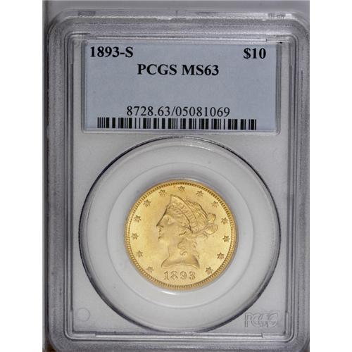 1893-S $10 MS63 PCGS. An obtainable issue up to MS63,